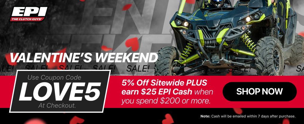 Loading... Please wait...EPI has been developing extreme-duty driveline parts for UTVs, ATVs, and snowmobiles since 1991. What started as a hobby has grown into a business shipping parts worldwide. In addition to performance clutch kits, EPI offers drive belts, axels, u-joints, seals and suspension kits for severe duty applications.